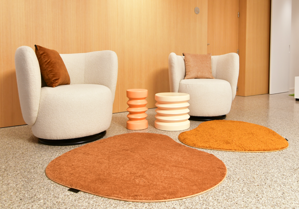 *Kijk hoe mooi deze schattige tapijten bij elkaar én bij onze Betty-fauteuils passen ! Ook deze zijn volledig op maat, vorm én kleur te verkrijgen :-)